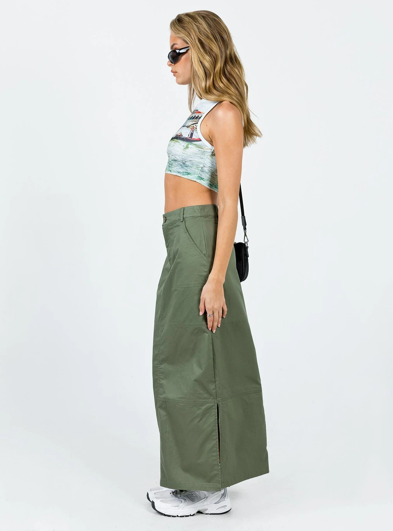 Princess Polly Devine Cargo Maxi Skirt Khaki
